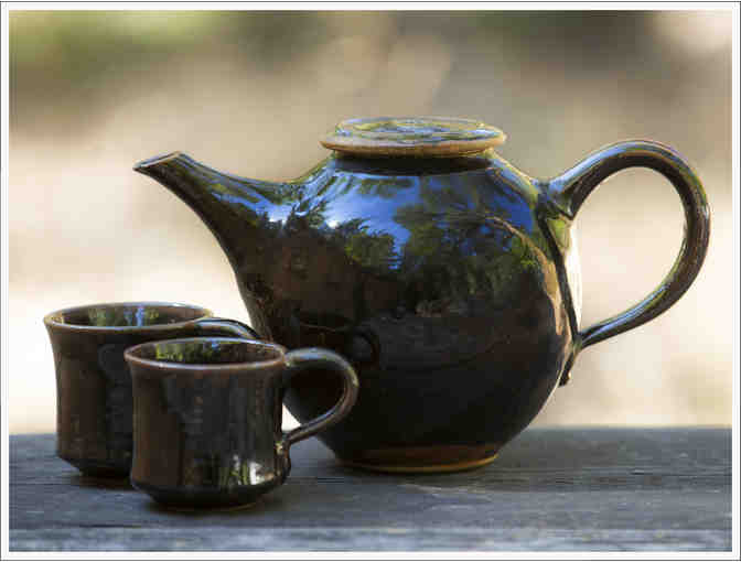 Timmokui Glaze teapot and two cups by Al Johnson.