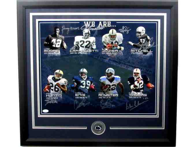 - One (1) Framed & Autographed 16x20 photo featuring Penn State Running Backs Cappelletti, Ennis, Dozier, Mitchell, Royster, Hunt, Moore, and Thomas.