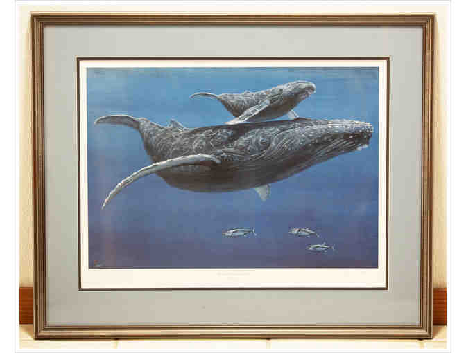 This wonderful signed print of a Humpback whale mother and calf by John Steel is professionally framed and measures w31.5" x h25.75"