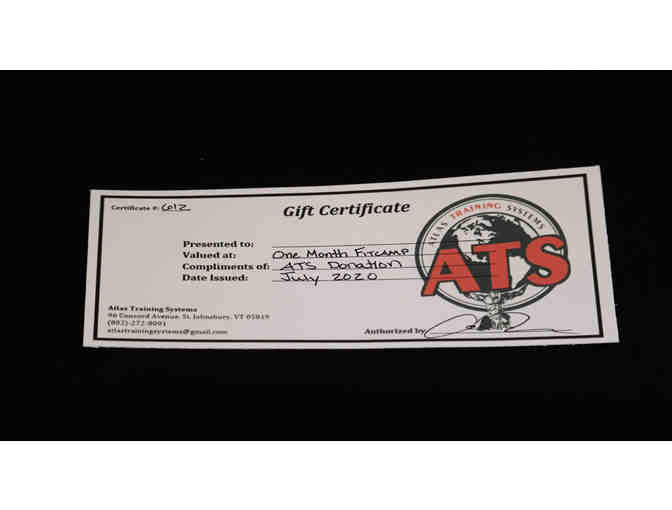 This is good for one month of fitcamp group training. Atlas Training Systems is located at 96 Concord Avenue, St. Johnsbury, VT. Phone 802.272.8091