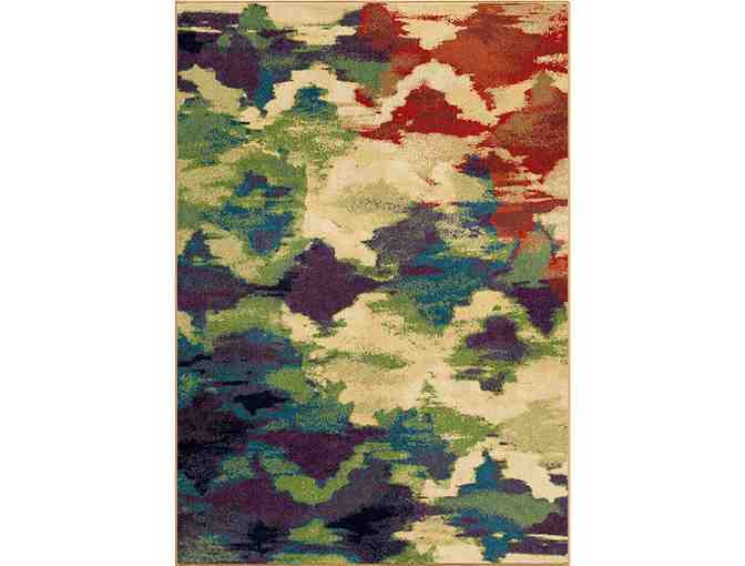 "Watercolor Trellis" delightful area rug. Colors are beige, purple, blue, green, and rusty red. Will go with lots and lots of decors!