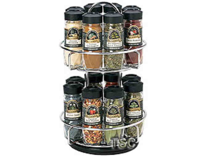 Want to spice up dinner tonight, and every night? Make the chef in your house giddy with this awesome, 2-tiered chrome spice rack from McCormick, filled with a variety of spices.