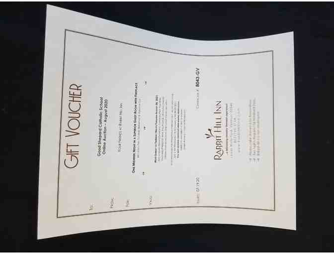 Good for most Sunday through Thursday nights through August 30th 2021. One night in a room with a fireplace! Not available Friday and Saturdays and some holiday weeks.