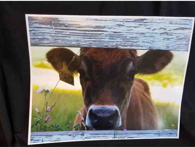 An 18"x20" adorable picture of a Vermont cow. Photo taken by Red Hen Photography on a summer afternoon.
