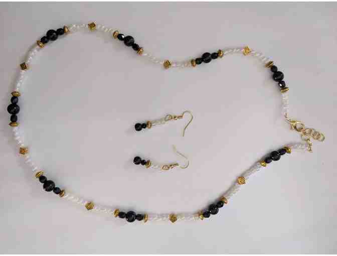 Show off your unique style with this beautiful black bead necklace and earring set!