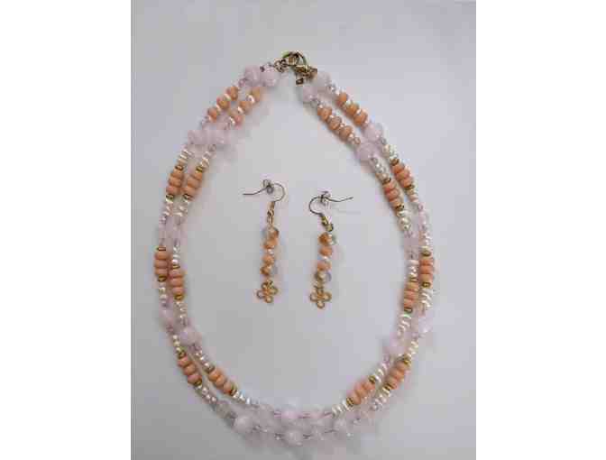 Show off your unique style with this beautiful peach bead double stranded necklace and earring set!