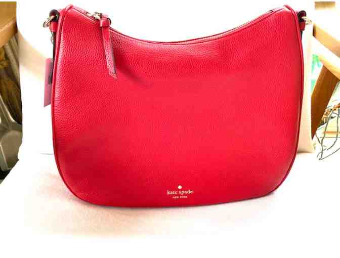 Designer red handbag by Kate Spade made of fine soft leather. Measurement 14"w x 10.5" t