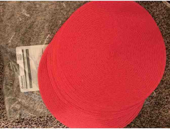 Twelve 16" Round Geranium colored Crate and Barrel Placemats