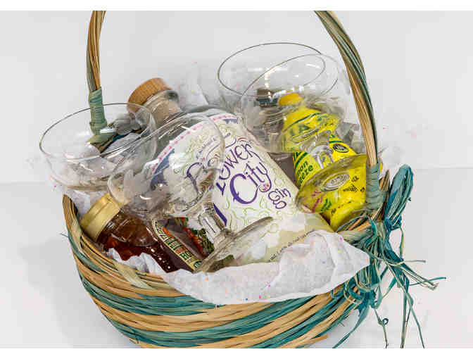 The name of this basket says it all - it's the BEE'S KNEES! This wicker basket includes all you need to make this famous cocktail. It's the perfect complement to sitting on the porch and watching the bees buzz by.