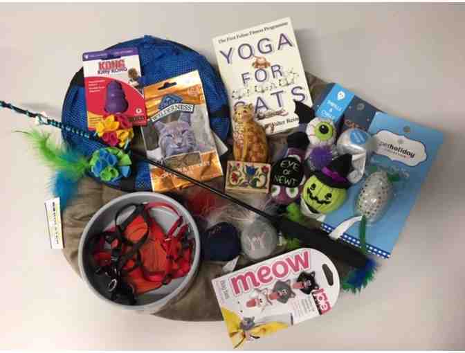 If you're the cat's meow, this meow-ve-lous prize package is the one for you. This cozy cat bed is filled with goodies for both you and your feline friend, including a floral ceramic dish, oodles of kitty toys, a cat tunnel, cat treats, a copy of "Yoga for Cats" by Walter Reiner, and a limited edition 2003 "Jasper" Heartwood Creek Cat figurine.