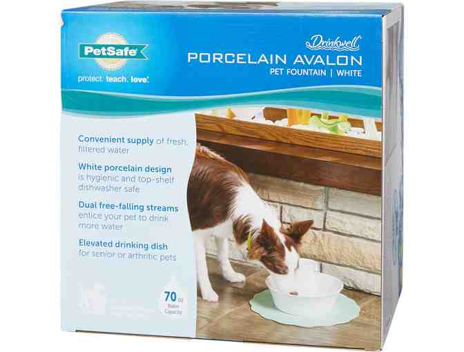 The Drinkwell Ceramic Avalon Fountain continuously circulates and filters your pet's water, keeping it cleaner and fresher than a normal water bowl. The Avalon Fountain offers 70 ounces of fresh, filtered water, and the ceramic design is easy to clean and looks great in your home. The dual free-falling streams aerate the water for freshness and encourage pets to drink more water.