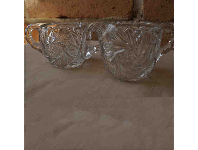 Sugar Bowl is 3 1/2" in diameter, 6" wide including handles, and 3" high