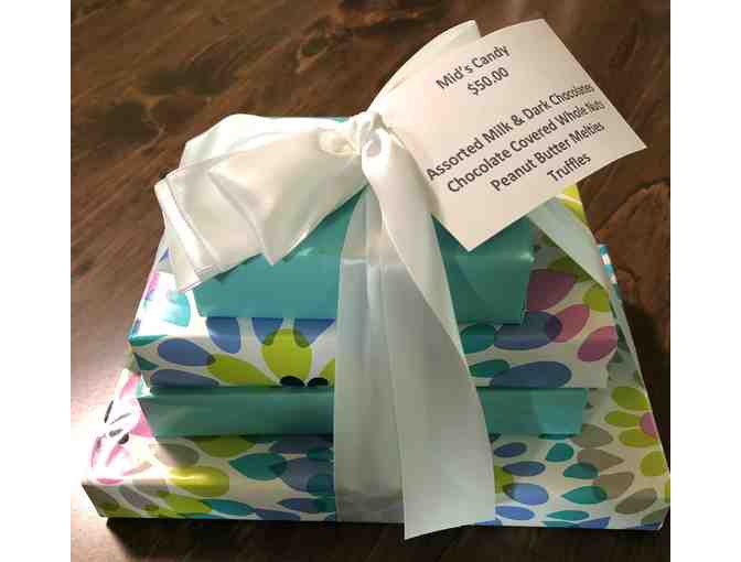 Four Gift Wrapped Boxes from Mid's Candies in Ebensburg.