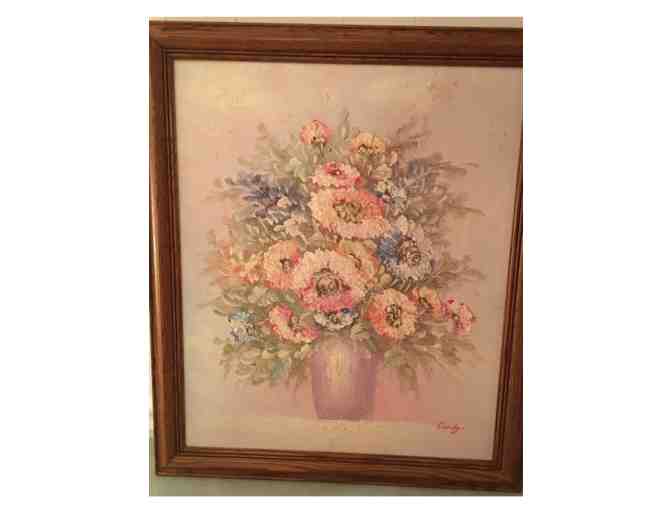 Oil painting of pastel flowers painted by artist Gordy with a certificate of registration