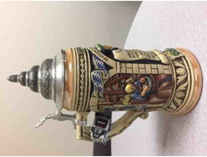 This unique Stein celebrates 500 Years of the “German Beer Purity Law.” It’s handcrafted from local German clay by the Mastercrafters of the KING-WERK Stein factory located in the Western Forests of Germany. Limited Edition of 500 pieces. This stein is approximately 11 inches tall.
