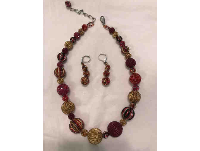 Smithsonian beaded necklace and earring set. Necklace is 16" with a 2" chain extension. Earrings are 1 1/4" drop.
