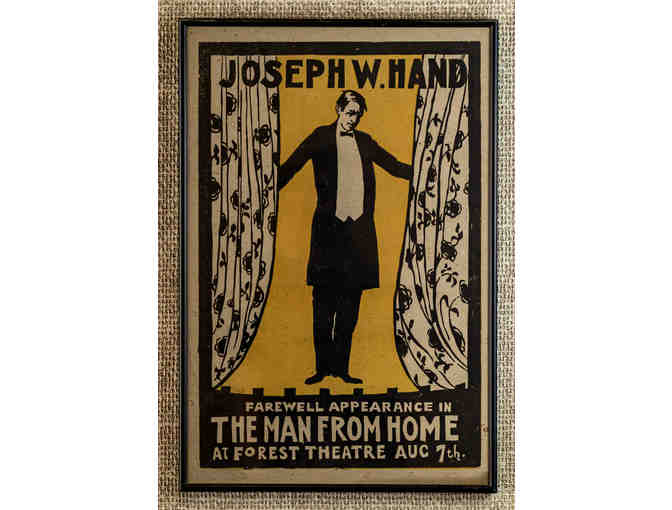 Joseph W Hand Farewell Appearance in The Man From Home at Forest Theatre Aug 7th. Vintage 1915 Poster, framed.