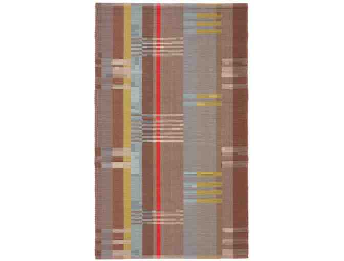 Handwoven Rep weave rug. Reversible and washable, cold water and line dry. Original design by Kelly Marshall, 100% cotton in dusty browns, cream, beige, grey, soft grey blue, accent soft greenish yellow and bright.