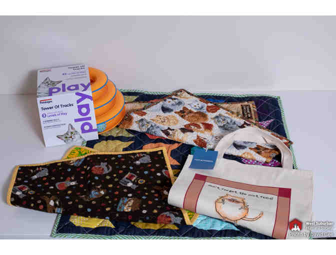 - Two cat-themed quilted mats