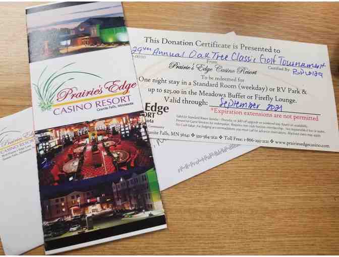 Take a mini get away with this gift certificate to Grantite Fall's Prairie's Edge Casino Resort with a 1 night stay & $25 to Meadows Buffet or Firefly Lounge.