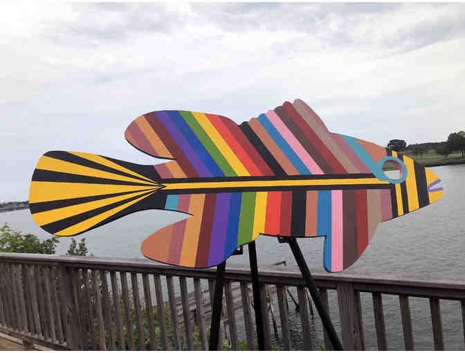 To view additional photos of artwork, please view this website from a computer (the phone/mobile site shows only one photo). No refunds or returns. Winner will pay an additional $10 processing fee on top of winning bid. Item can be picked up in Beverly, MA, or we can arrange for shipping to be paid at Buyer’s expense. We will get in touch with the winning bidder after the auction closes to arrange for pickup/delivery in Beverly. Weighted stands available separately for $45. Please contact hwolsey@beverlymainstreets.org to inquire about shipping a Bass or purchasing a stand. Please note - the back of the Bass has drill marks from the mounting hardware used during the outdoor exhibit.