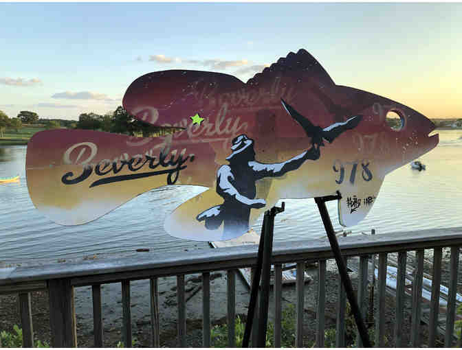 To view additional photos of artwork, please view this website from a computer (the phone/mobile site shows only one photo). No refunds or returns. Winner will pay an additional $10 processing fee on top of winning bid. Item can be picked up in Beverly, MA, or we can arrange for shipping to be paid at Buyer’s expense. We will get in touch with the winning bidder after the auction closes to arrange for pickup/delivery in Beverly. Weighted stands available separately for $45. Please contact hwolsey@beverlymainstreets.org to inquire about shipping a Bass or purchasing a stand. Please note - the back of the Bass has drill marks from the mounting hardware used during the outdoor exhibit.
