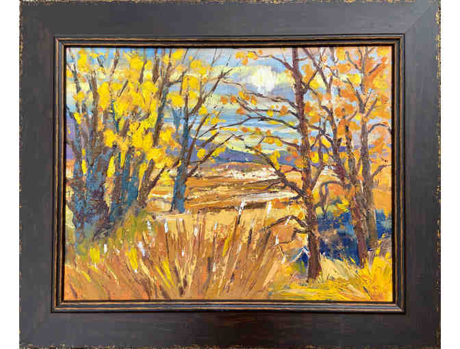 Done with a palette knife for texture, Framed with antique-style, gold rubbed walnut.