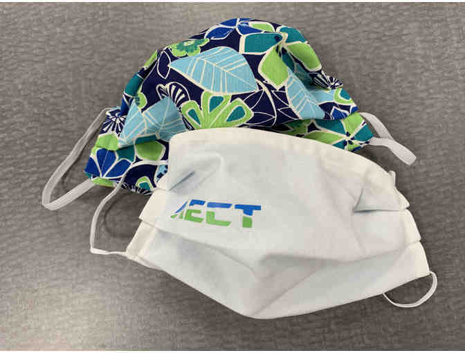 Handmade facemask: AECT logo mask and floral print mask. Adult size.
