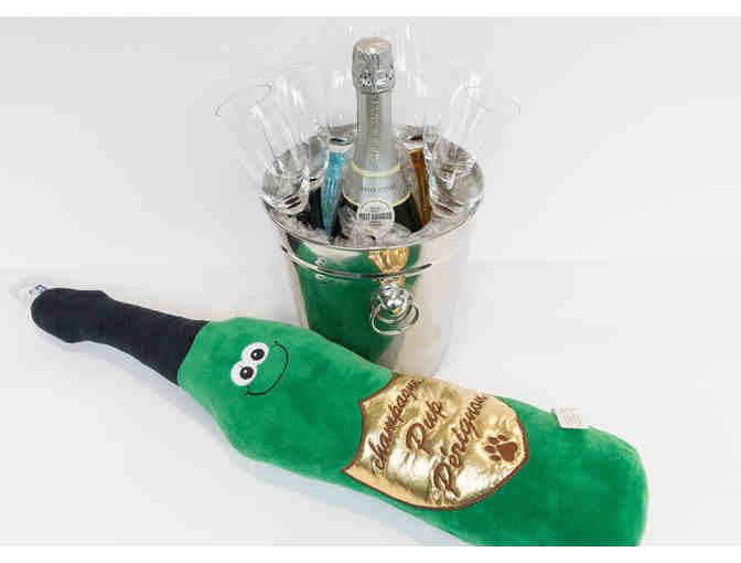 We didn't forget your dog! A large pup toy of a champagne bottle is also included.