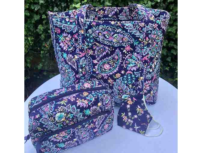 Always on trend, always fun and you are always safe and ready to go with your Vera Bradley Tote and cosmetic bags in French Paisley and facemask.