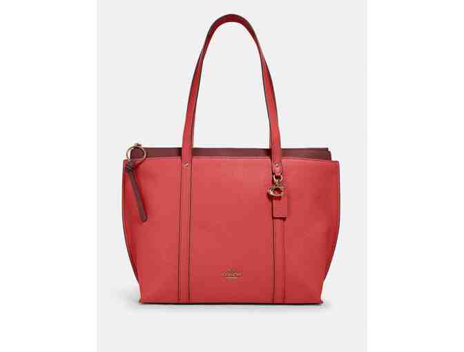 Bid on this gorgeous Bright Coral Coach May Tote and take it to work (will fit a laptop), lunch or a weekend away!