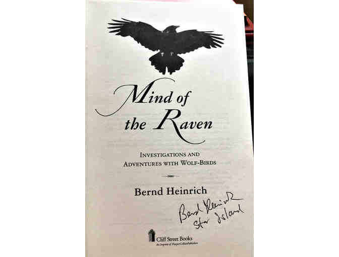 This item includes a signed copy of "Mind of the Raven" and an original sketch by one of the foremost experts on ravens, Bernd Heinrich. Heinrich was the speaker of the week for the Natural History Conference on Star Island in 2003. His pencil drawing is entitled "Raven on Ledge, B.Heinrich, Star Island, 6/25/03" professionally framed, approx. 8.5 x 7.5