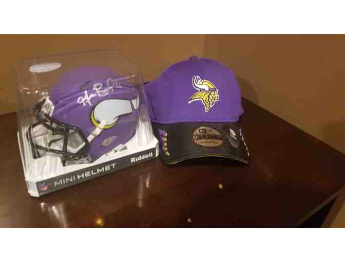 This MN Viking package includes an autographed mini helmet from Garrett Bradbury (including certificate of authenticity), Adjustable Viking hat, MN Proud Vikings hooded sweatshirt (size XL), 2 MN Vikings Face masks, MN Vikings 3 piece BBQ Set.