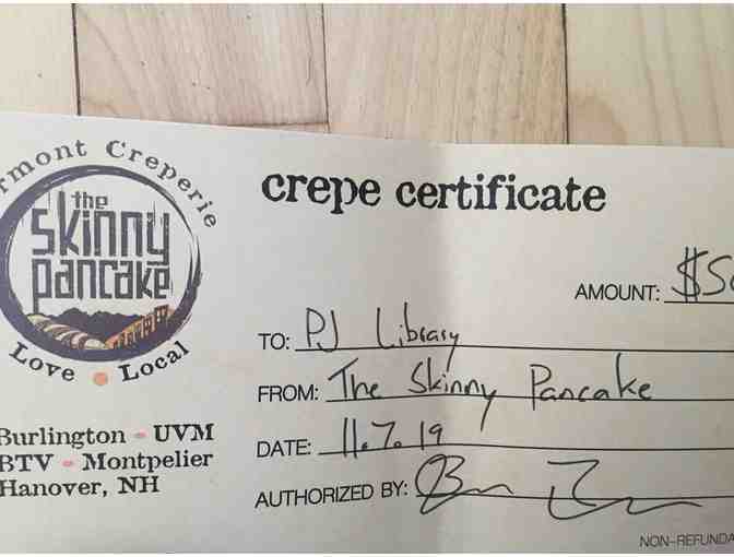 $50 gift certificate to Skinny Pancake in Burlington, Montpelier or Hanover, NH
