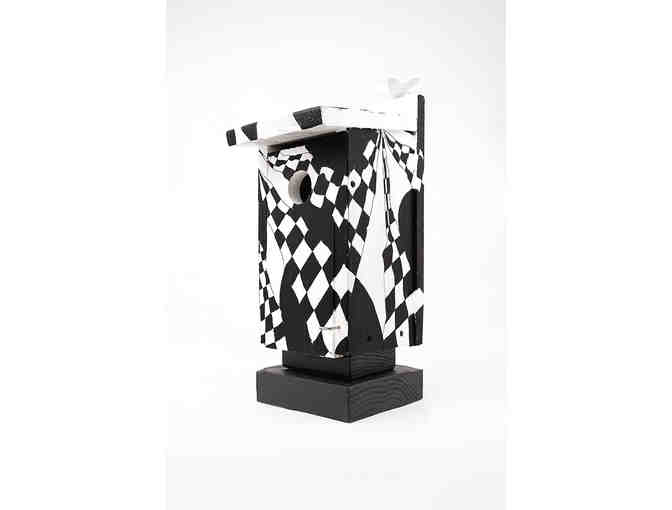 This birdhouse is currently displayed at Pegasus Shoes.