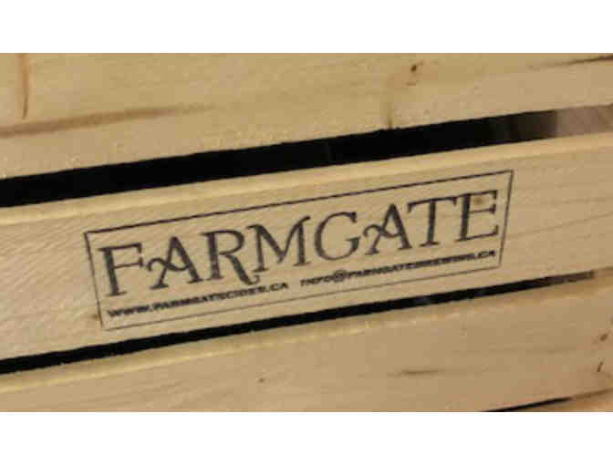 A wonderful variety of apple ciders available in a wooden crate and tour of Farmgate