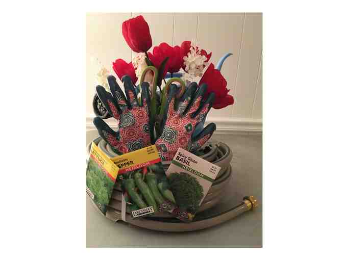 Everything for the new gardener! 5/8" 50 foot medium hose with watering can, gloves, scissors, nozzle and more!