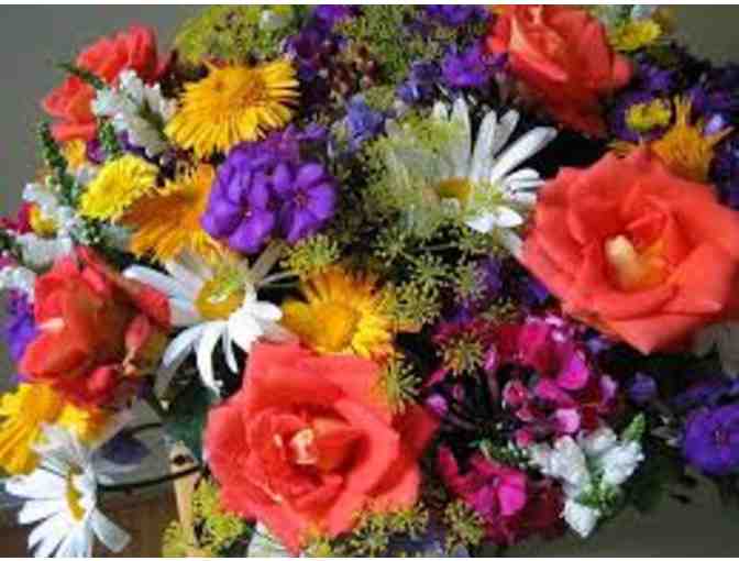 Gift certificate for $75.00 worth of a tied bouquet of fresh cut flowers.