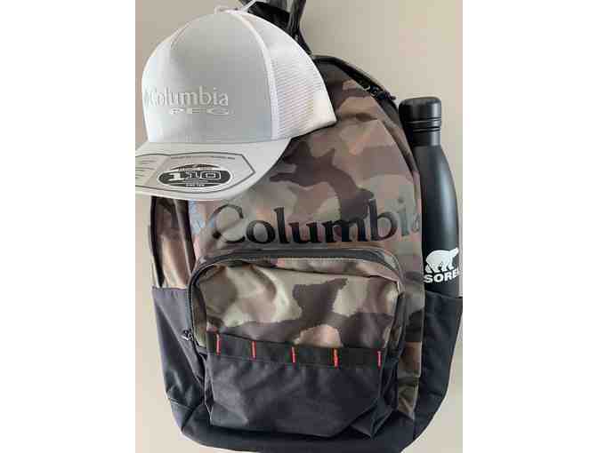- Columbia Zigzag 22L Backpack (laptop sleeve can accommodate most computers up to 15", water bottle pocket, front accessory pocket, flat padded bottom panel, dimensions 17.5" x 12.0" x 7.9")