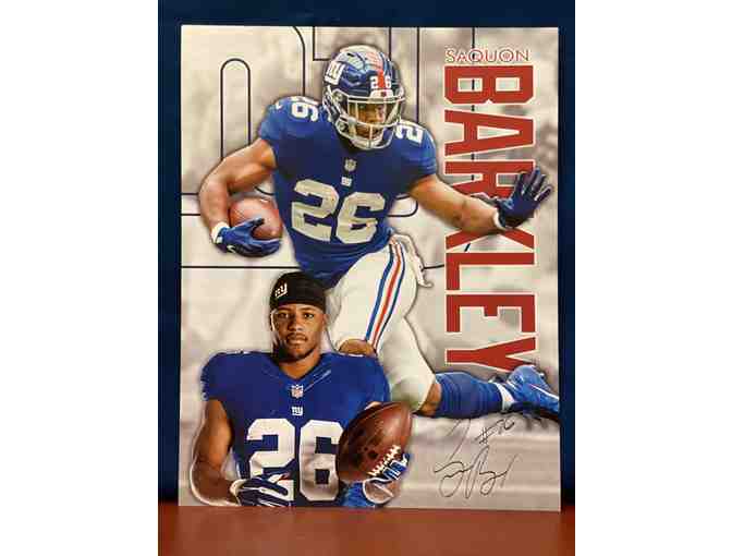 New York Giants fans will want this collectible pre-autographed lithograph poster of running back, Saquon Barkley. Dimensions of the poster are 11"x14".