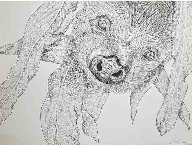 Find the perfect place in your home for this beautiful, artful pen illustrated drawing of a Two-Toed Sloth. Hand illustrated and drawn, this matte piece will make a wild addition to your home decor!