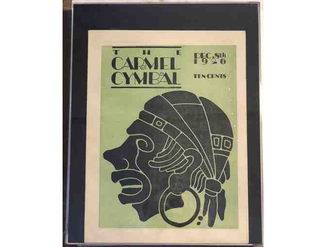 The Carmel Cymbal December 8, 1926, framed in an 11 x 14 clear acrylic box frame, so item can be removed and read.