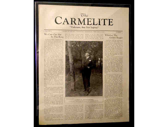 The Carmelite Newspaper Feb. 15, 1928, framed in an 11 x 14 clear acrylic box frame, so item can be removed and read.