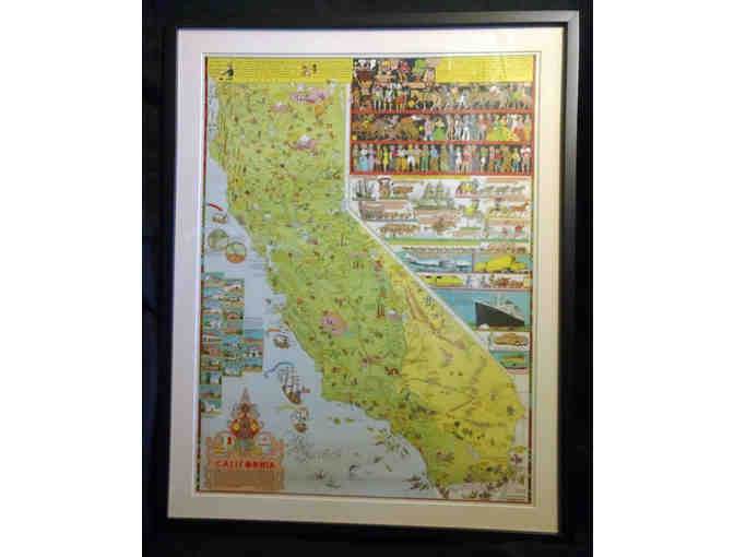 2 - Vintage Jo Mora California Map, 1945. Framed.