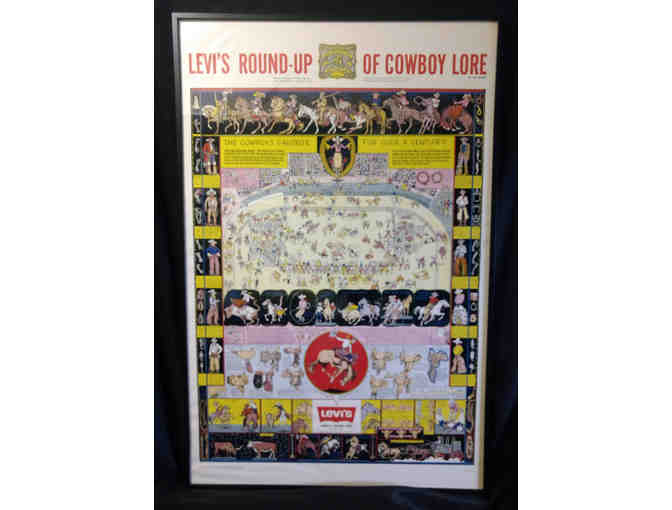 3. Jo Mora Levi's Round-Up of Cowboy Lore framed poster circa 1965. Framed.