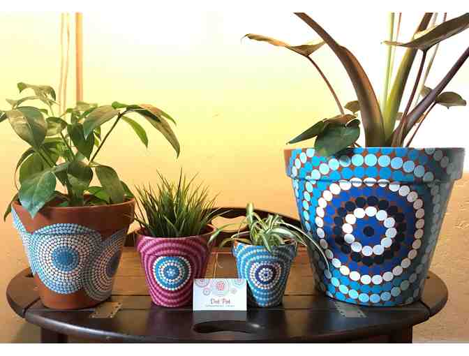 4 Handcrafted Dot Pot Planters, painted 1 dot at a time.