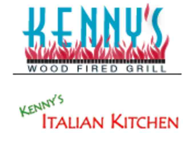 Kenny's Restaurant Group gift certificates for dining at Kenny's Wood Fired Grill and Kenny's Italian Kitchen. Each gift certificate is redeemable for $50.00. Valid through 09.01.2021.