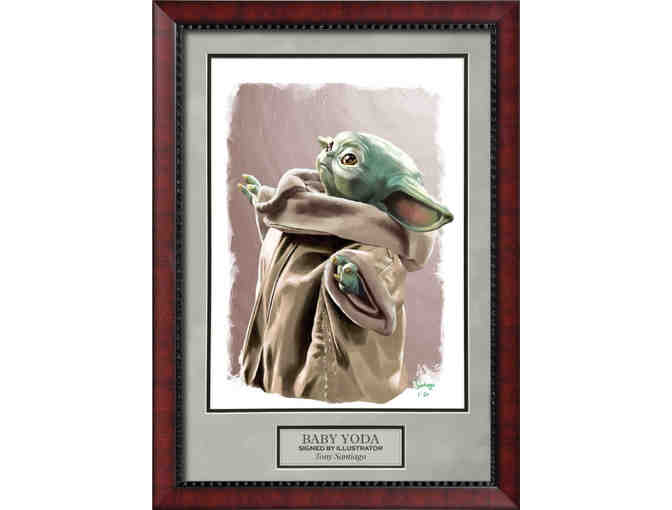 Baby Yoda 19×13 autographed by illustrator Tony Santiago fully-framed and matted.