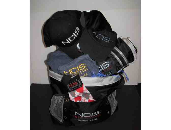 NCIS New Orleans Insulated Tote, Beach Blanket, 2 T-shirts (M & L), socks, baseball cap and mesh runner's cap.