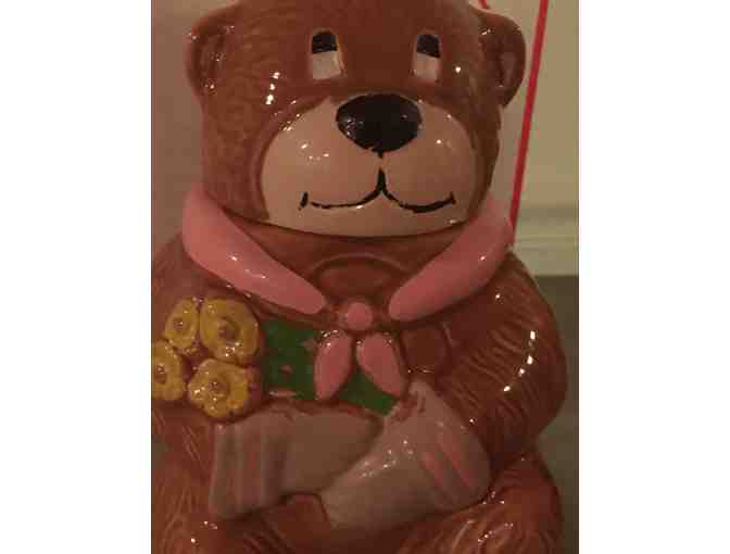 Vintage ceramic teddy bear Flowers & Friend McCoy cookie jar from Canister USA; 12" with box
